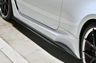 ドライカーボンリヤアンダースプリッターは機能性と日常走行を両立したデザインで、純正カーボン大型ロッカーフィンとの組み合わせも最良です。